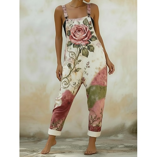 Per donna Salopette Attivo Floreale Senza Maniche Senza maniche Dritto Collo quadrato Tasca con tasca Vacanza Quotidiano Vestibilità comoda Verde chiaro Blu Verde Estate