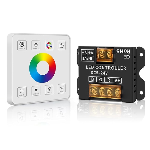 Dimmer per strisce luminose a LED, telecomando wireless RF 2.4G, dimmer da parete dimmerabile, adatto per strisce LED RGB RGBW RGBCCT monocolore, controller dimmer a canale singolo DC5V-24V 10-50A