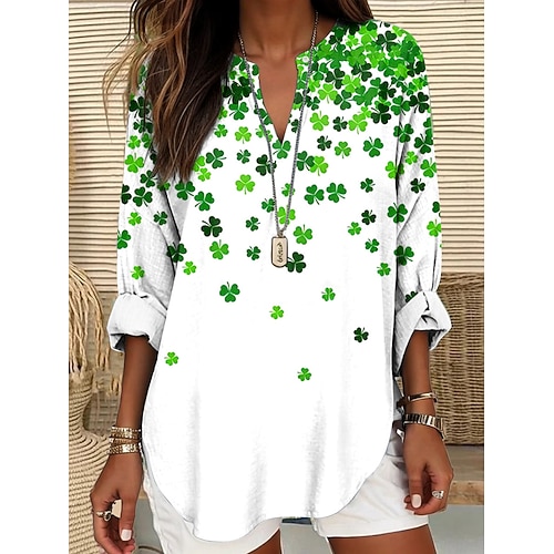 Tunica Camicia da Donna per il Giorno di San Patrizio Grafica Shamrock Vintage Stile Quotidiano Manica Lunga Collo a V Top Normale Stampa Giornaliera Festa Nera Bianca Estate Primavera