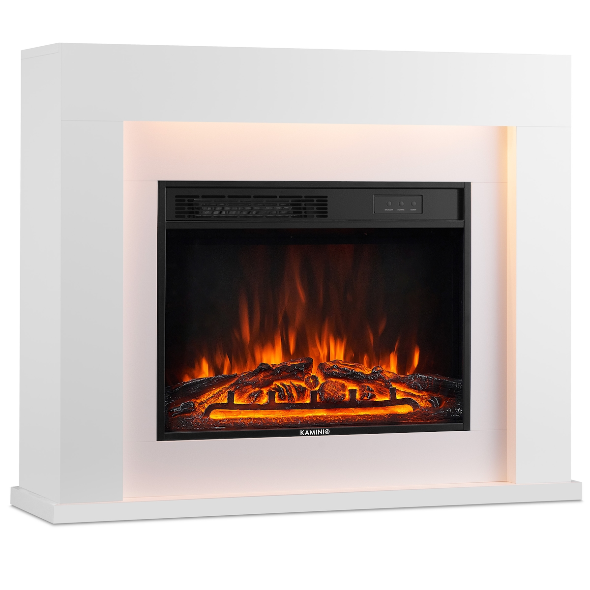 KAMINIO Elektrokamin MATTI - Elektrischer Standkamin mit Heizung, 3D-Flammeneffekt, LED-Ambientelicht, Fernbedienung - 38 Zoll, Weiß