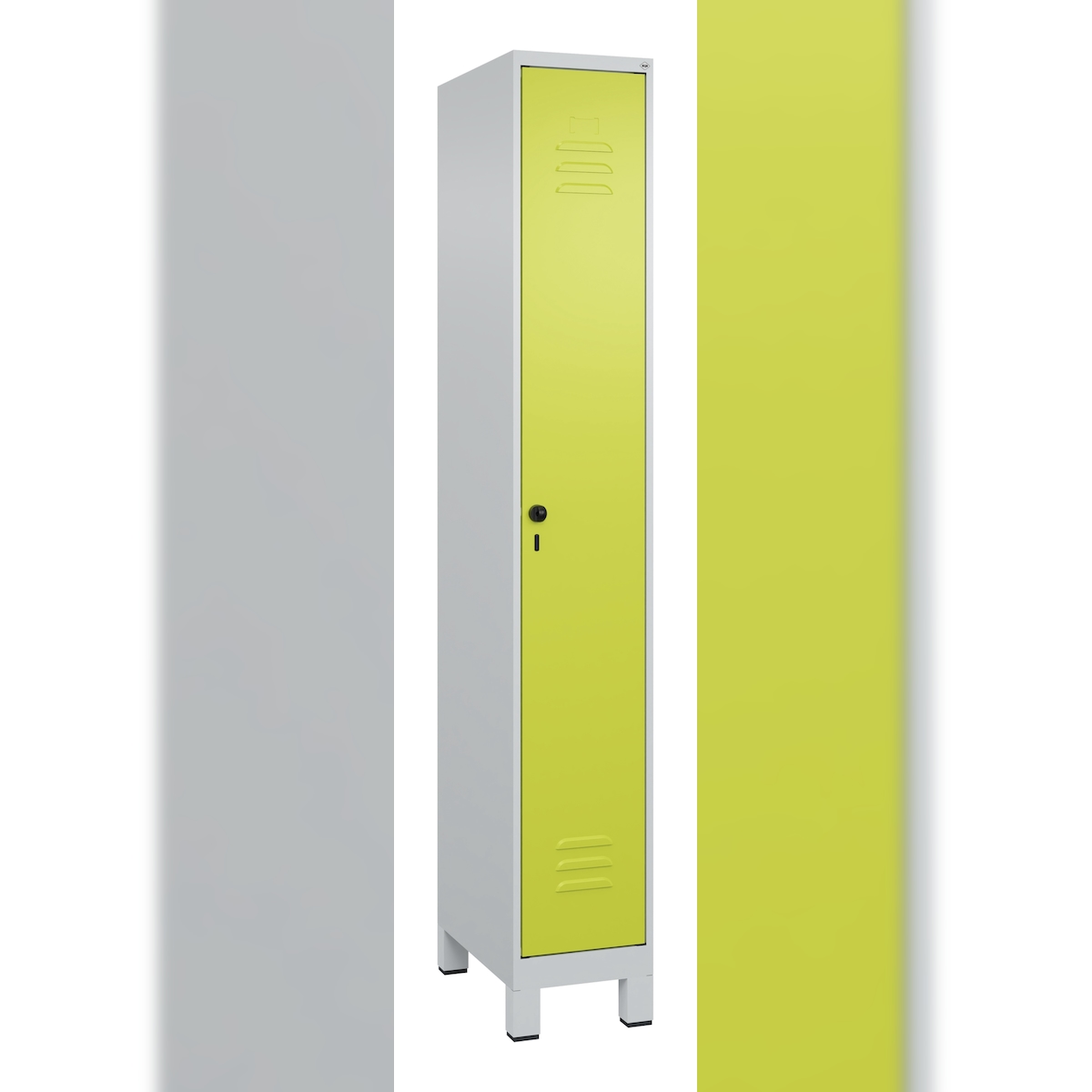 C+P Spind Classic PLUS, Füßen, 1 Abteil, HxBxT 195x30x50cm, Sicherheitsdrehriegel, Hellgrau/Clowngrün von PROREGAL