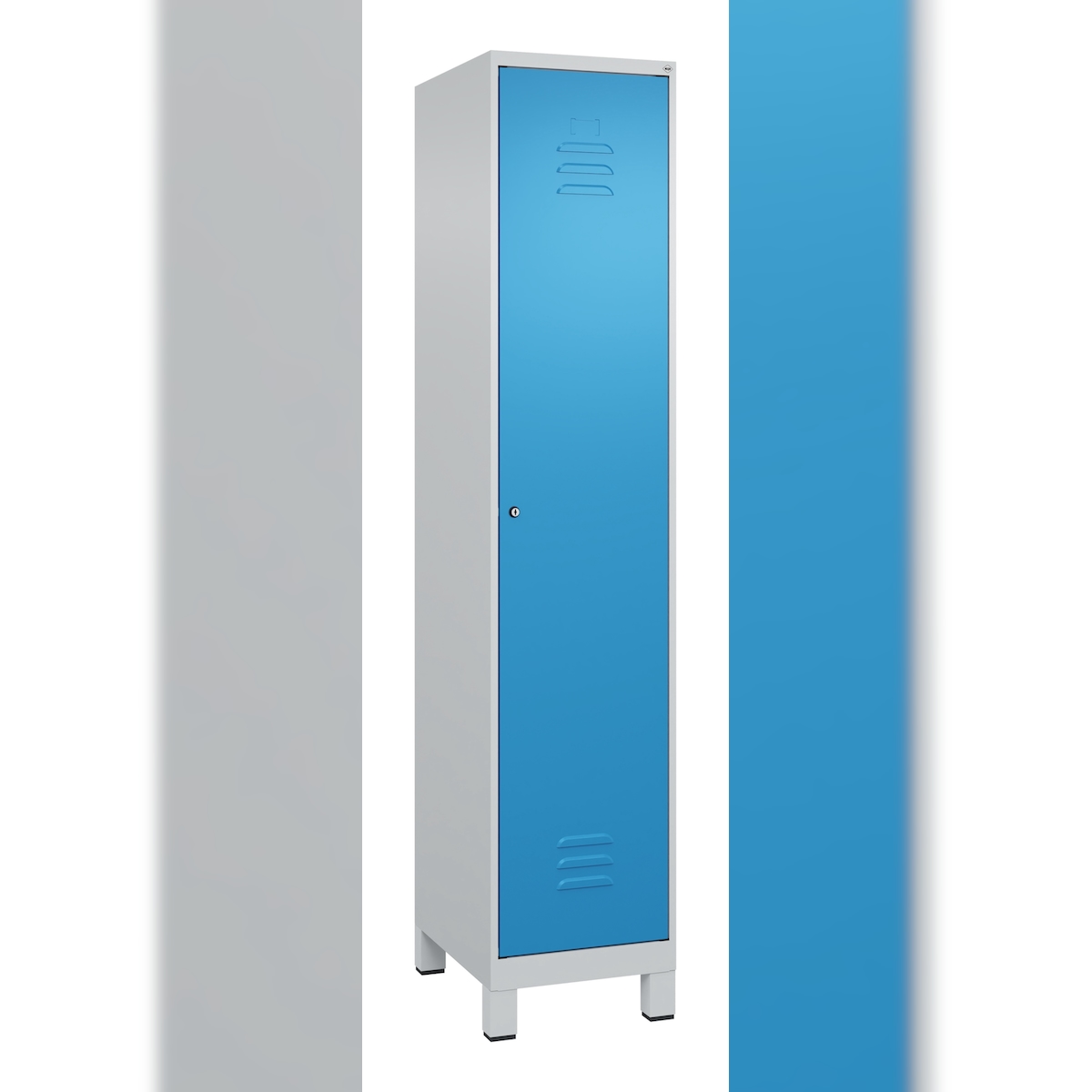C+P Spind Classic PLUS, Füßen, 1 Abteil, HxBxT 195x40x50cm, Zylinderschloss, Hellgrau/Lichtblau von PROREGAL