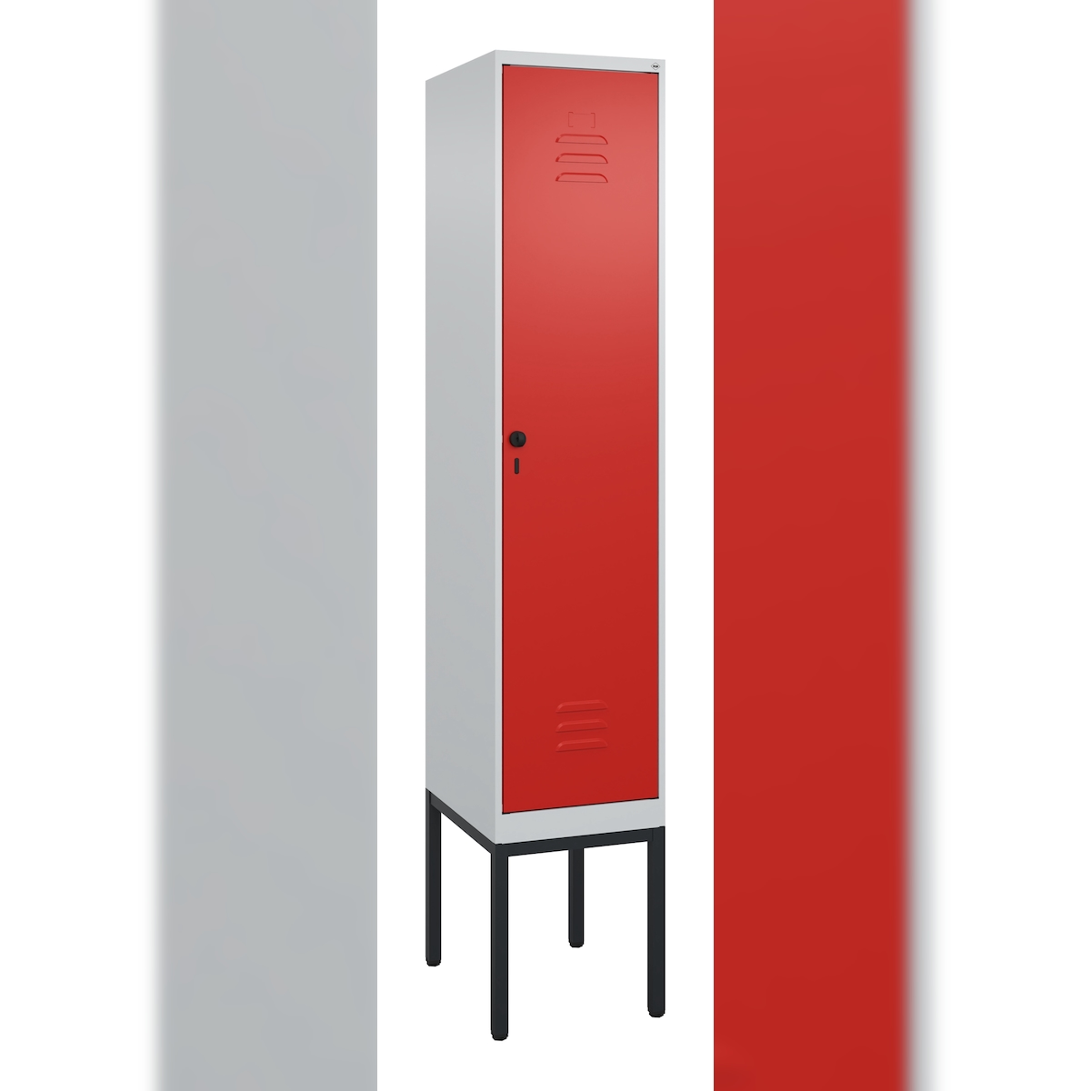 C+P Spind Classic PLUS, Gestell, 1 Abteil, HxBxT 212x40x50cm, Sicherheitsdrehriegel, Hellgrau/Rot von PROREGAL