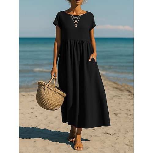 Per donna Abito maxi Abito a trapezio Vacanza Casual Boho Quotidiano Vestibilità comoda Semplice Manica Corta Girocollo Blu Nero Bianco Verde chiaro Estate Primavera Autunno