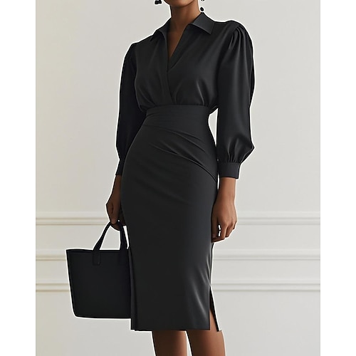 Per donna Abito Lungo Maxi Abito Abito nero Tubino Elegante Moda Moderno Quotidiano Ufficio Ferie Vestibilità regolare Semplice Manica Lunga Scollo a V Nero Rosa Grigio chiaro Beige Primavera Autunno