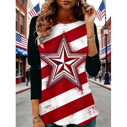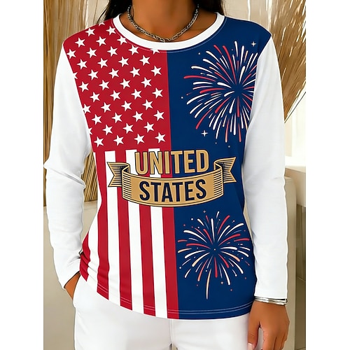 Maglietta Patriottica del Giorno dell'Indipendenza Maglietta Donna Grafica Bandiera USA Moda Stile Classico Maniche Lunghe Collo Rotondo Stampa Giornaliera Weekend Blu Nero Bianco Rosso