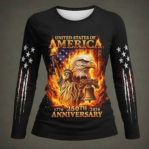 Giorno dell'Indipendenza Americano 250° Anniversario Maglietta Patriotica Maglietta Donna Grafica Bandiera Elegante Classica Casual Maniche Lunghe Collo Rotondo Stampa Giornaliera Blu Nero Estate