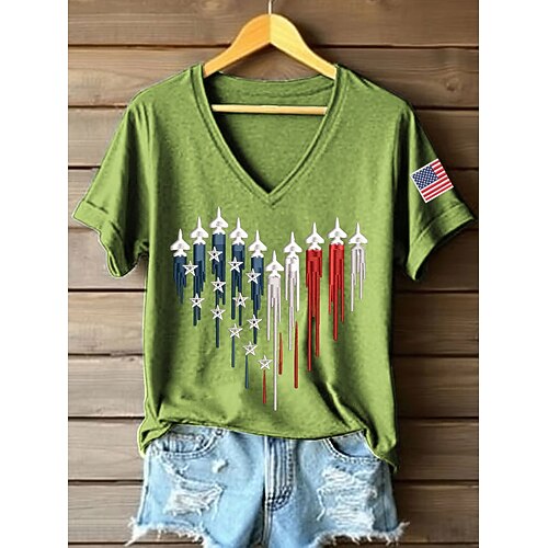Giorno dell'Indipendenza Americana Per donna Maglietta Stampato Grafico Bandiera Vintage Elegante Classico Manica Corta Scollo a V Top lunghi Quotidiano Blu Nero Rosso Verde Estate Primavera