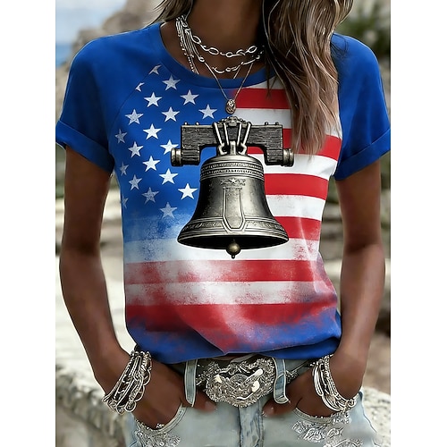 Giorno dell'Indipendenza Americana Per donna Maglietta Stampato Grafico Bandiera Americana Vintage Elegante Classico Manica Corta Girocollo Top Regolari Quotidiano Blu Giallo Rosso Estate Primavera