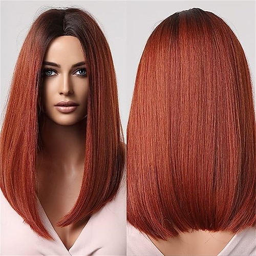 parrucche caschetto castano per donna biondo mette in risalto la parte centrale dei capelli sintetici corti e lisci