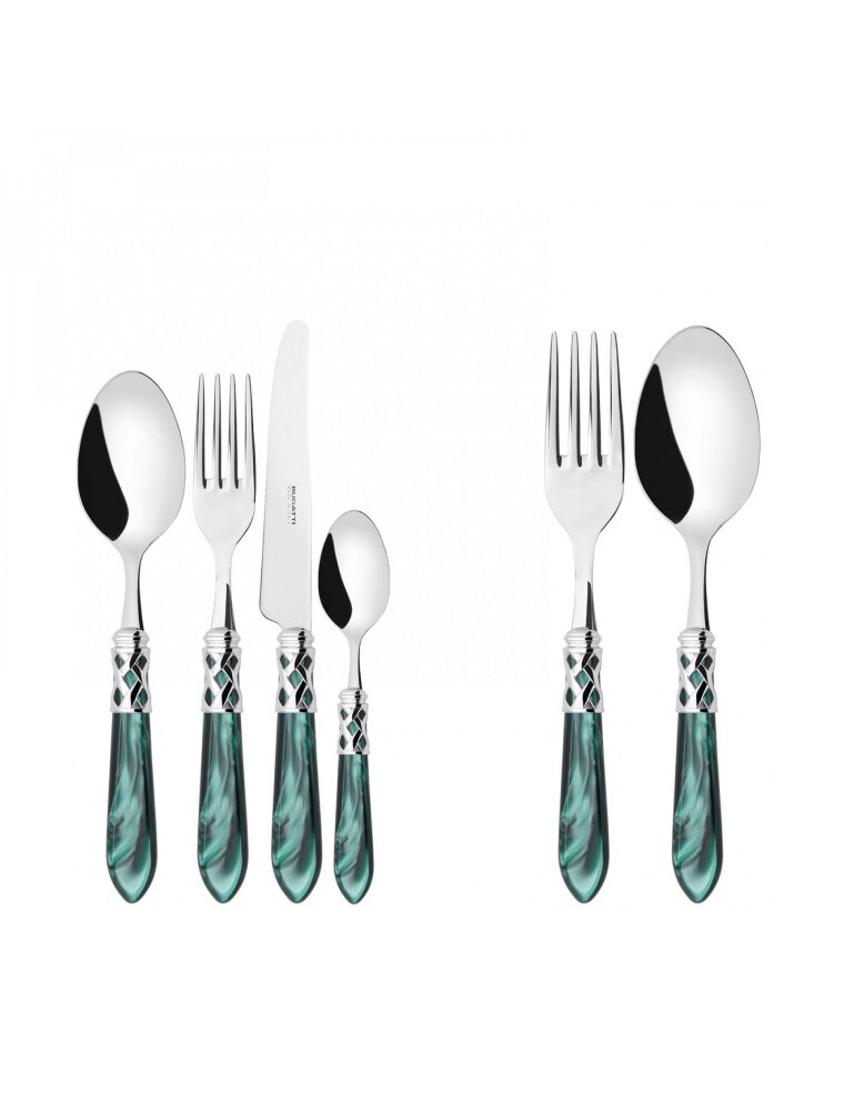 aladdin chromring, besteckset 50 tlg. grüner griff, galeriebox, casa bugatti
