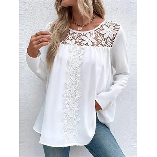 Per donna Camicia di Pizzo Pizzo Patchwork Tinta unica Elegante Casual Manica Lunga Girocollo Top Regolari Quotidiano Blu Nero Rosa Grigio Estate
