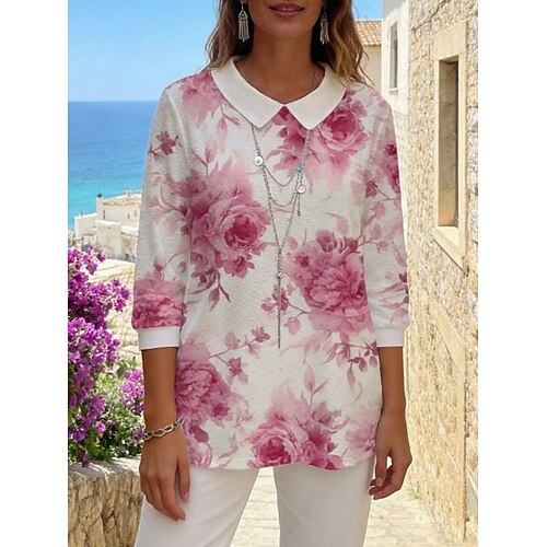 Per donna Camicia casual Camicia da Spiaggia Blusa Stampato Floreale Grafico Elegante Essenziale Boho Manica Lunga Collare Peter Pan Top Regolari Quotidiano Ferie Uscire Rosa Azzurro cielo Arancione