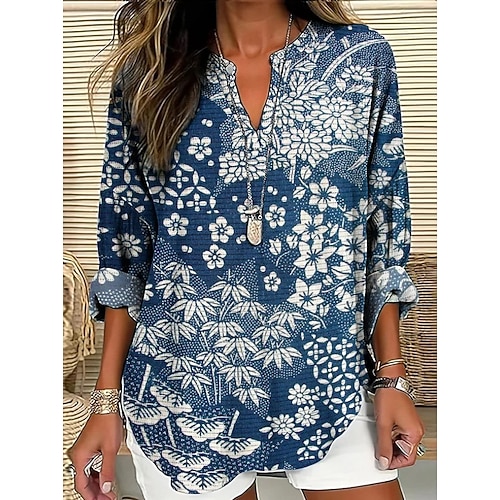 Per donna Camicia Grafico Vintage Elegante Manica Lunga Scollo a V Blu Rosa Grigio Estate Primavera