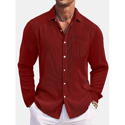 Per uomo Camicia Camicia elegante Camicia button-down Camicia di Velluto a Coste Semplice Matrimonio Uscire Blu Nero Rosso Marrone chiaro Manica Lunga Collo ripiegato Primavera Autunno Abbigliamento