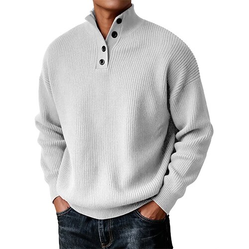 Per uomo Felpa Maglione a maglia Maglione lavorato a maglia A Coste Maglia Top Regolari Bottoni Lavorato a maglia Semplice Collo alla coreana Moda Streetwear Casuale Abbigliamento quotidiano