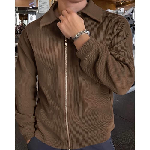 Per uomo Felpa Maglione elegante Cardigan Maglione con Zip Maglione a maglia A Coste Maglia Top Regolari Lavorato a maglia A coste Semplice Collo alla coreana Moda Scialli Affari Casuale Abbigliamento