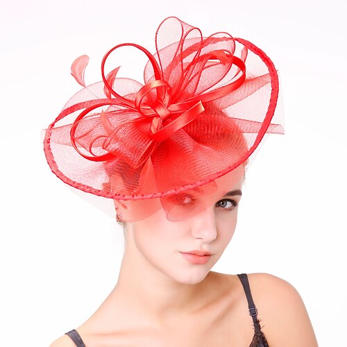fascinators berretto Copricapo Organza Cappello Fedora A falda larga Cappello di velo Corsa di cavalli cocktail Elegante Retrò Con Piume Colore Puro Copricapo Copricapo