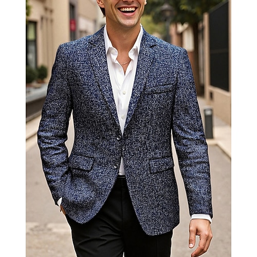 Per uomo Laurea Blazer Abbigliamento da cocktail Tuxedo Affari Ricevimento di matrimonio Moda Casual Primavera Autunno Poliestere Semplice Tasca Bottoni Casual / Quotidiano Doppiopetto Giacca