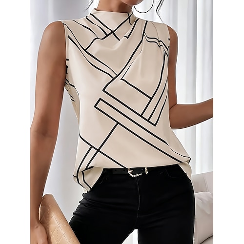 Per donna Camicia Blusa Maglietta senza maniche Geometrico Elegante Essenziale Classico Senza Maniche Collo Alto Top Regolari Quotidiano Ferie Uscire Albicocca Estate Primavera