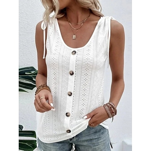 Per donna Canotta Traforato Bottoni Semplice Moda Elegante Classico Senza Maniche Collo a U Top Regolari Quotidiano Uscire Weekend Nero Bianco Giallo Vino Viola Estate Primavera