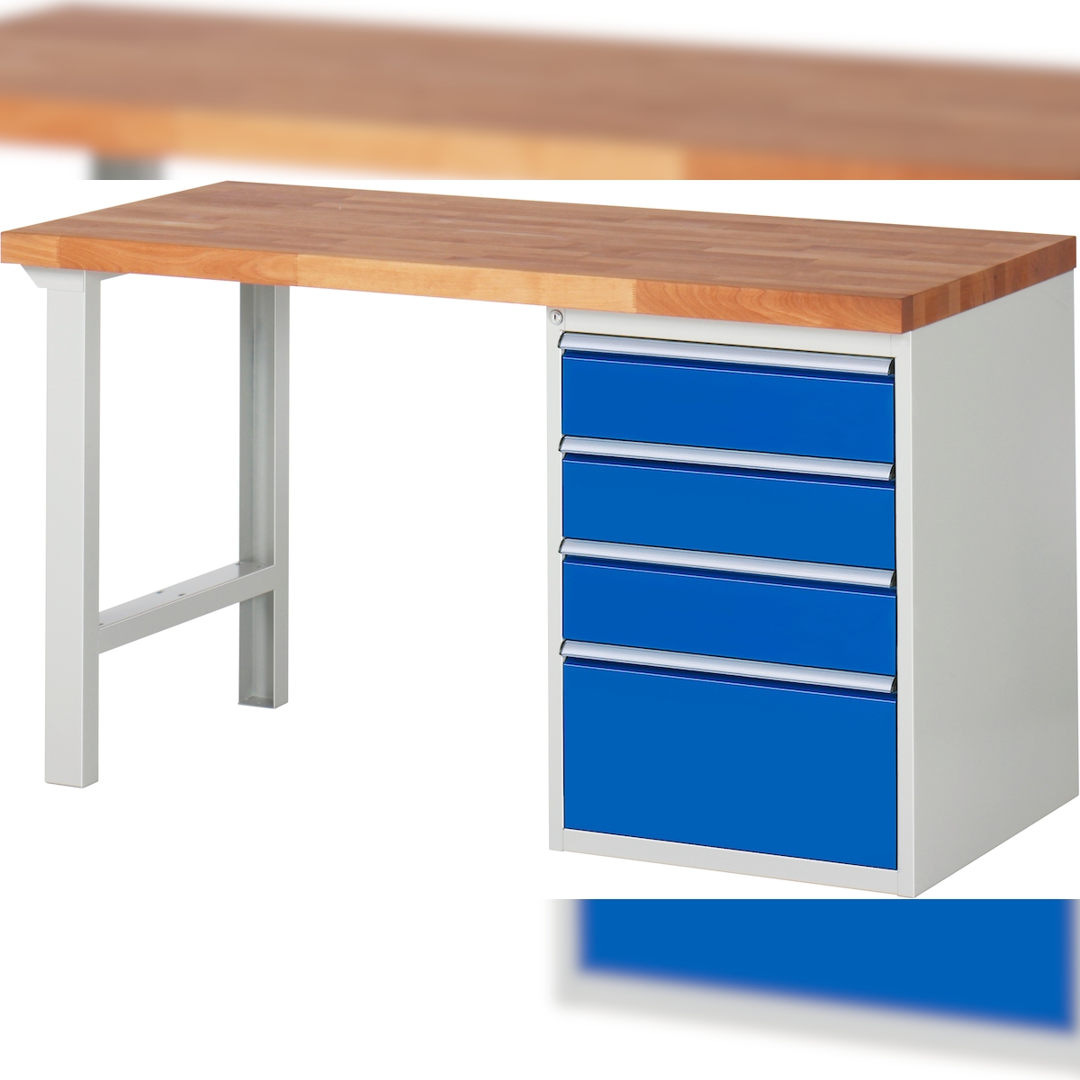 PROREGAL Werkbank Serie 7000 - Modell 7510 | HxBxT 89x150x70cm | 4x Schublade | Schubladenmaße 3x150 + 1x270mm | Lichtgrau | Arbeitstisch Werktisch