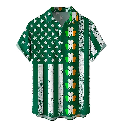 camicia casual da uomo a righe con quadrifoglio per il giorno di San Patrizio da indossare ogni giorno per uscire nel fine settimana autunno/autunno couverture maniche corte giallo, verde s, m, l