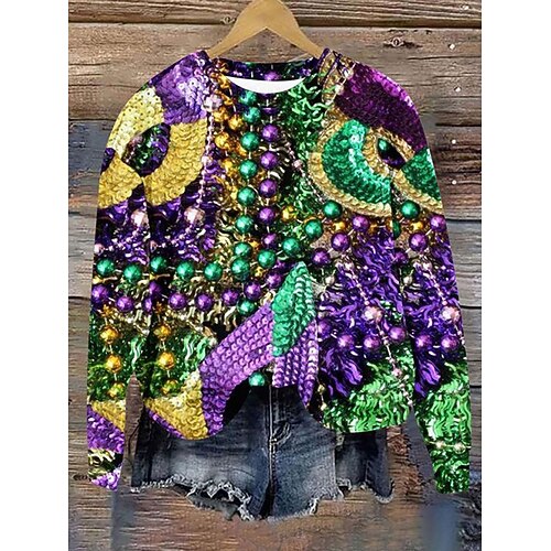 Felpa da Donna Carnival Graphic Casual Maniche Lunghe Collo Tondo Tops Regolari Casual Street Dailywear Nera Viola Verde Autunno Inverno