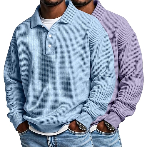 Per uomo Magliette Polo a Nido d'Ape Testurizzato Formale Affari Classico Manica Lunga Moda Tinta unica 2 Pezzi Confezione multipla Autunno Primavera Autunno Vestibilità comoda 2# 3# 4# 5# 6# 7#
