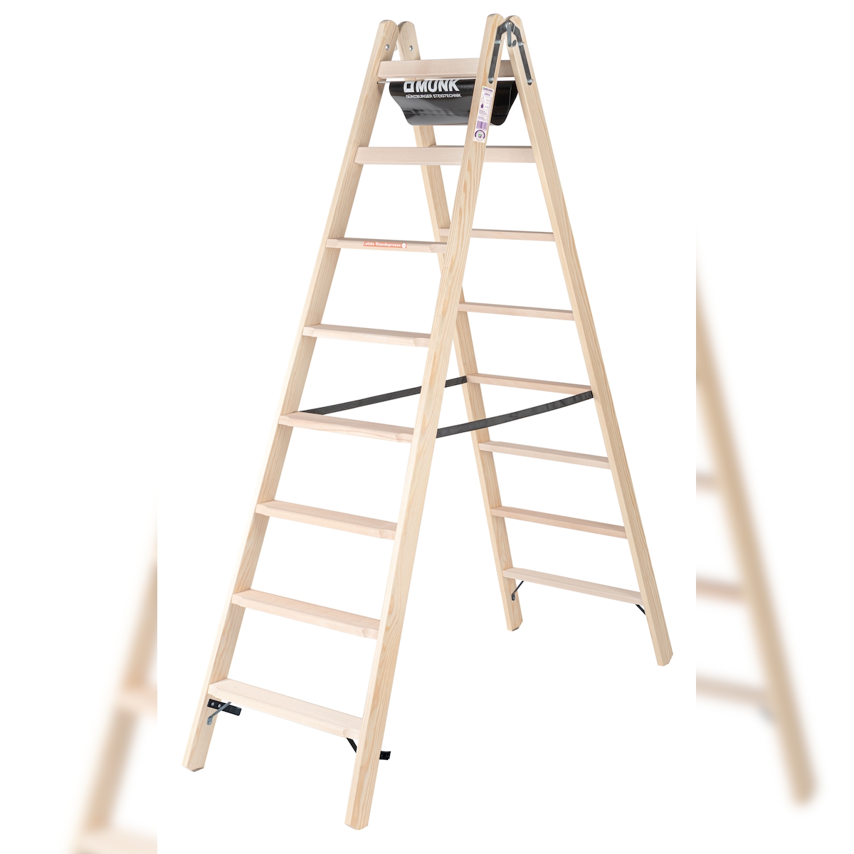 PROREGAL Stufen-Stehleiter Holz beidseitig begehbar 2x8 Stufen