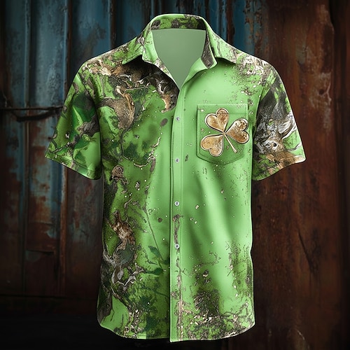 Festa di San Patrizio Per uomo Trifoglio Marmo Arte astratta Camicia Camicia Estiva Camicia con Bottoni Manica Corta Vintage Retrò Feste Ferie Estate Primavera Collo ripiegato Stampa 3D camicie con