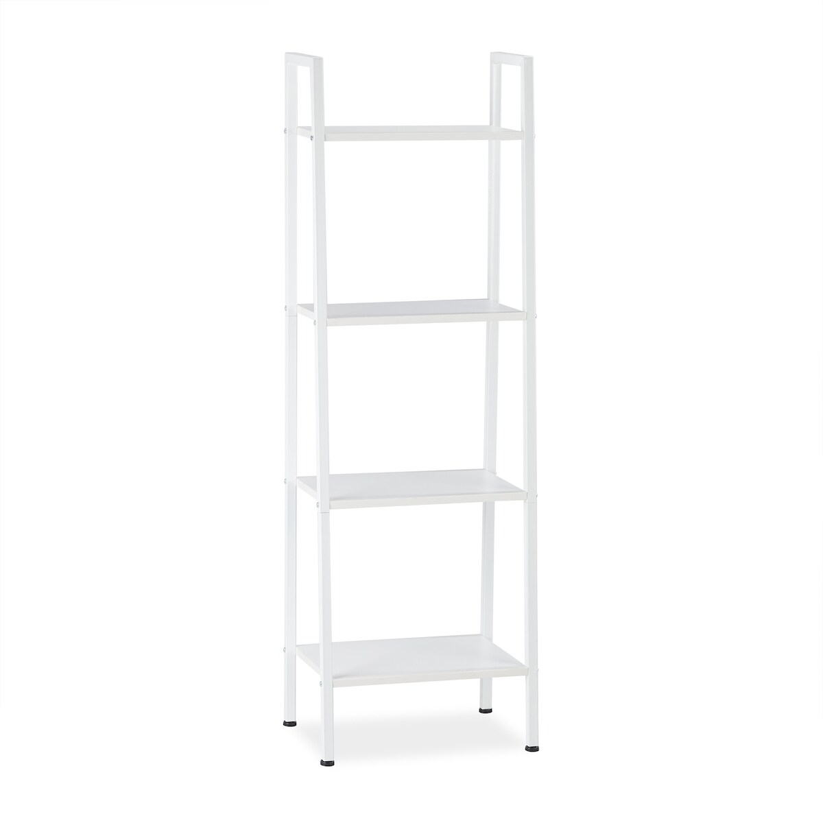 Relaxdays Standregal, modernes Leiterregal m. 4 Ablagen, Dekoregal für Pflanzen & Bücher, HBT: 136 x 44 x 31,5 cm, weiß
