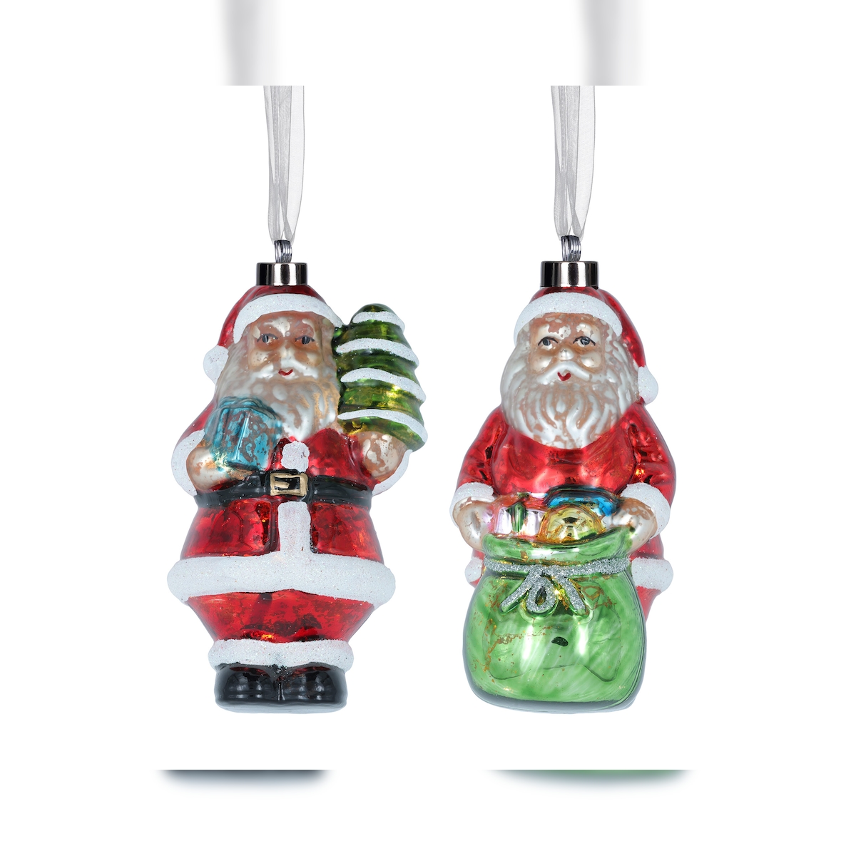 Lumineo 1x Christbaumschmuck Glas 12cm LED Weihnachtsmann Figur zum Aufhängen - Weihnachtsbaum Anhänger Weihnachten Weihnachtsbaumschmuck Nikolaus beleuchtet