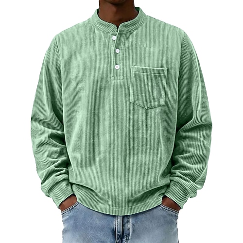 Per uomo Maglietta Camicia di Velluto a Coste Maglia Henley Manica Lunga Henley Primavera Autunno Tinta unica Vintage Streetwear Elegante Tasca Manica corta Quotidiano All'aperto Vacanza Nero Blu