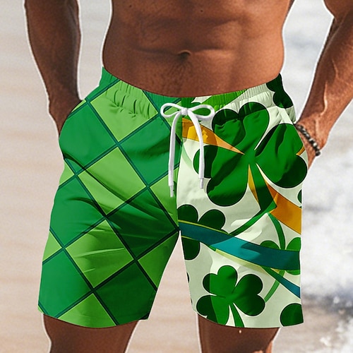 Festa di San Patrizio Per uomo Geometrico Trifoglio Griglia / Plaid Costumi da bagno Pantaloncini da mare Pantaloncini da Surf Misura del girovita medio Moda Casual Feste Ferie Tasche Laterali fodera