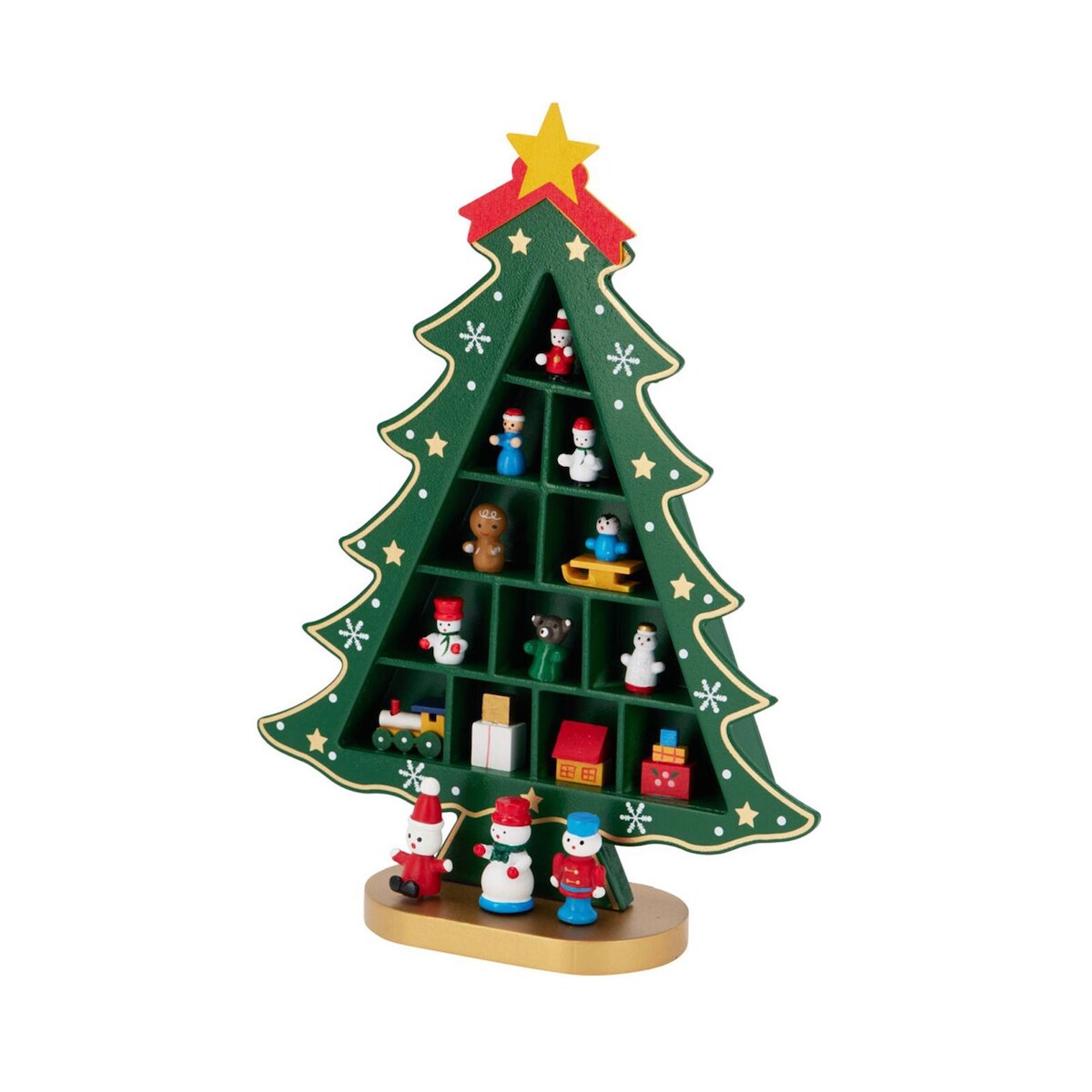 WellHome - Weihnachtsbaumfigur aus MDF mit grüner Dekoration, Höhe 29 cm.