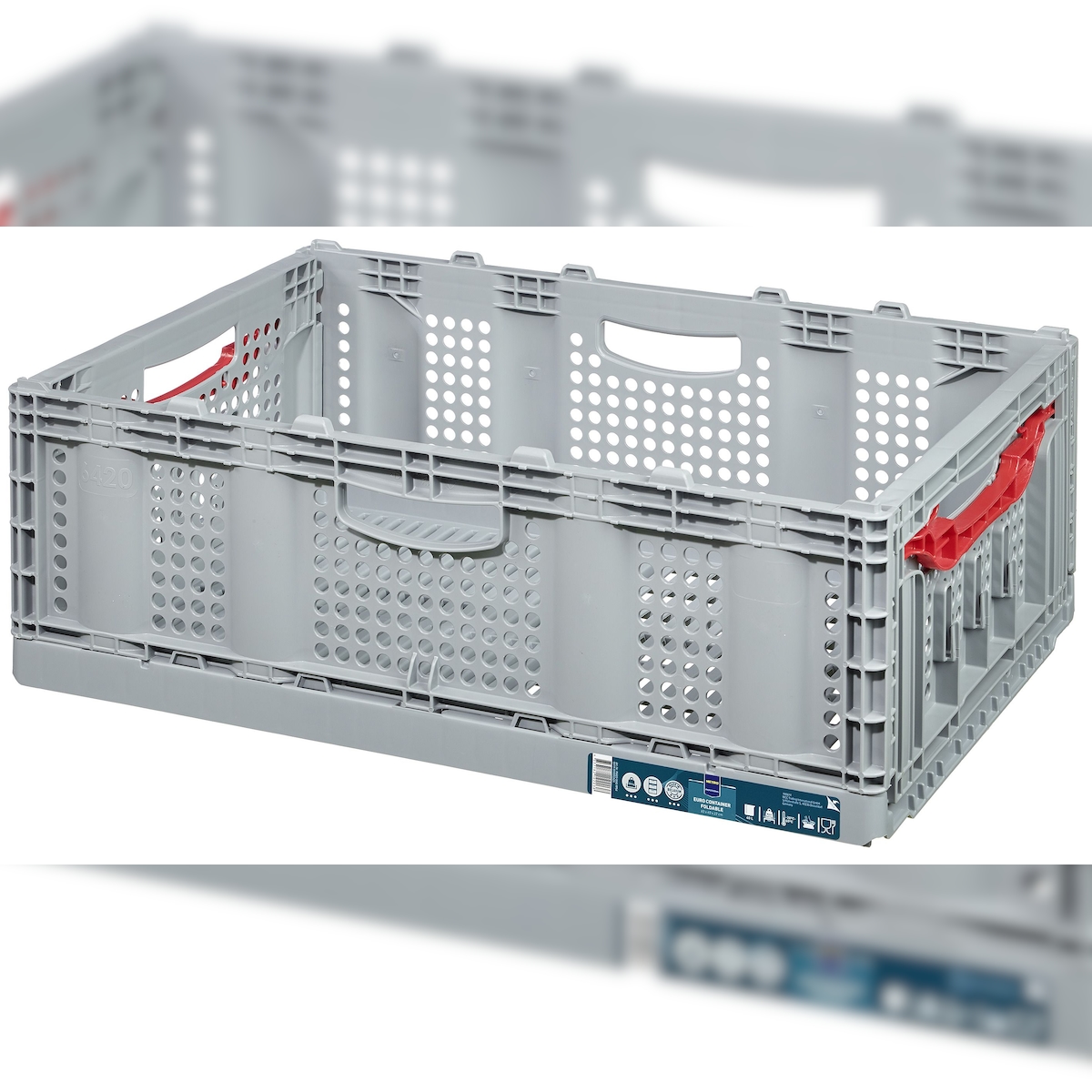 METRO Professional Eurobox, PP, 60 x 40 x 22 cm, 40 L, perforiert, klappbar, mit Handgriff, max. Produktbelastung 20 kg, grau