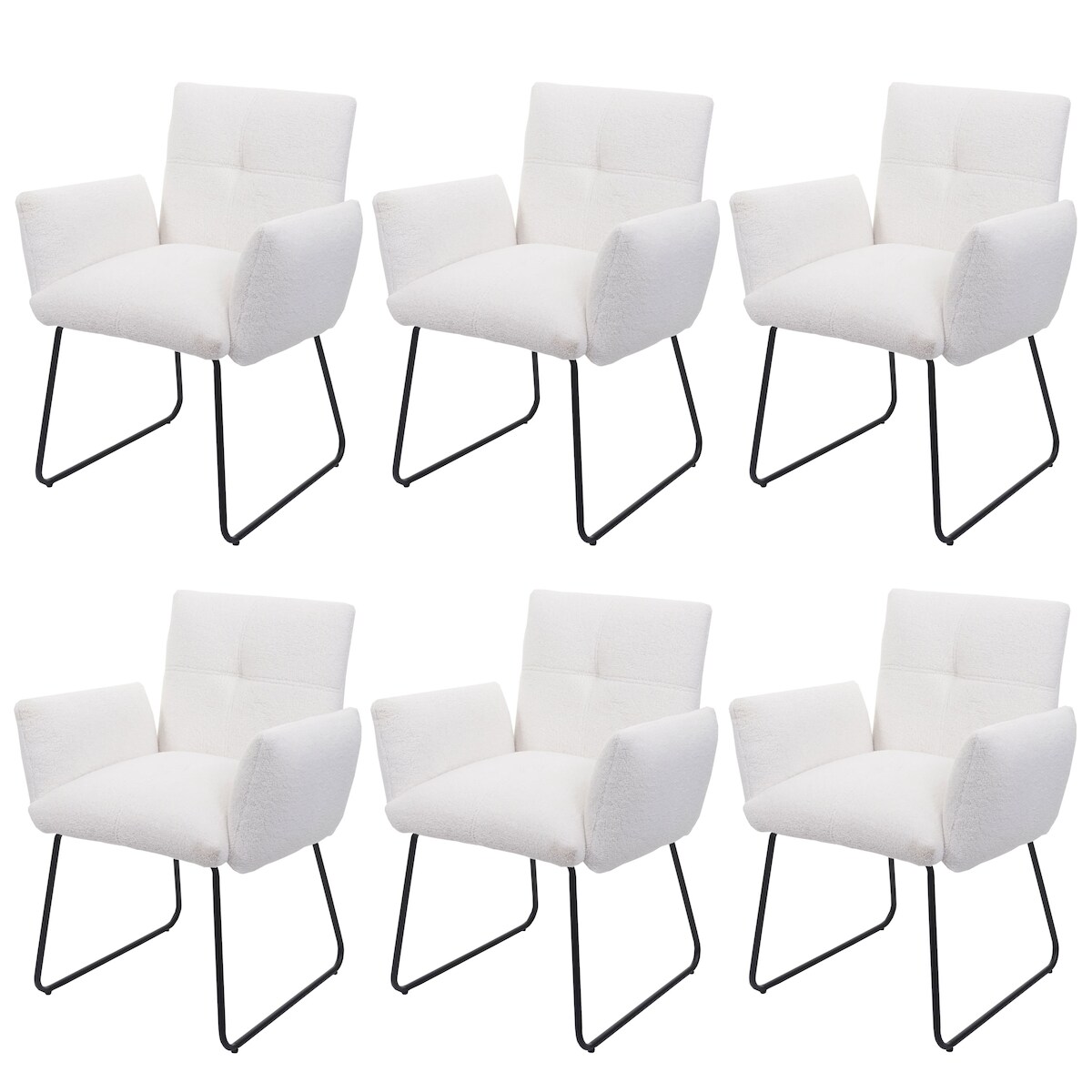 Mendler 6er-Set Esszimmerstuhl HWC-K34, Küchenstuhl Polsterstuhl Stuhl Armlehne, Öko-Tex Bouclé Stoff/Textil Metall MVG ~ weiß