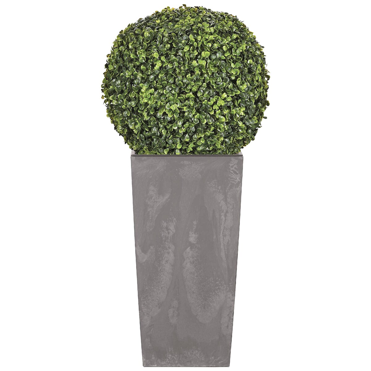 WellHome - Hoher Topf 35L Urbi Square Effect in Hellgrau mit Buchskugel 36 cm