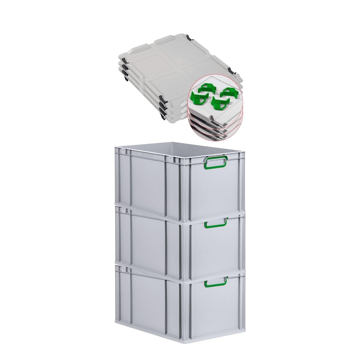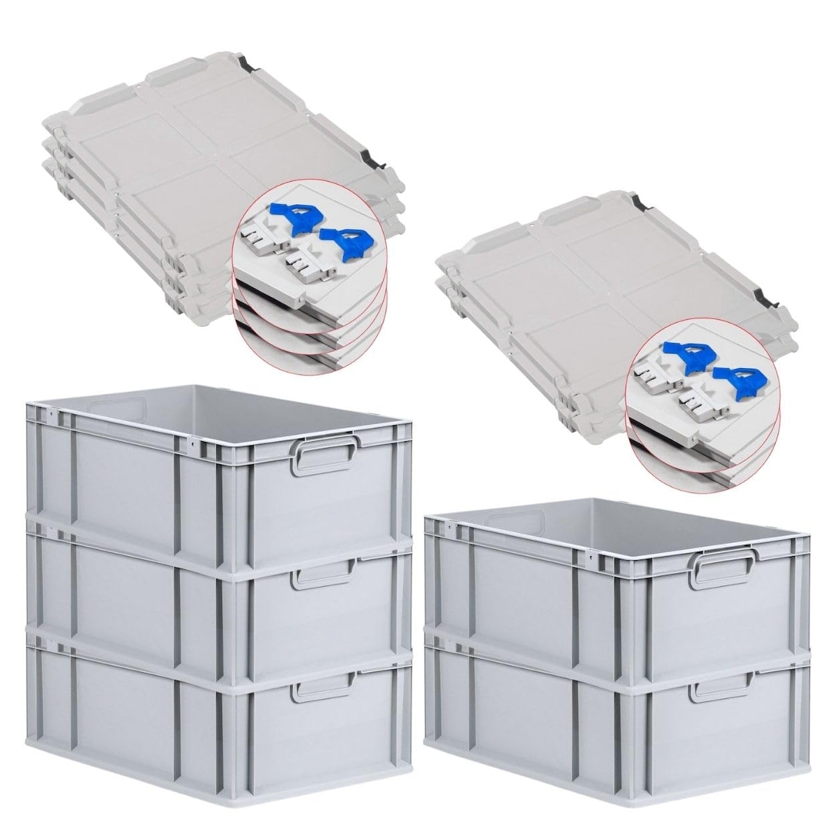 PROREGAL SuperSparSet 5x Eurobox NextGen Economy mit Scharnierdeckel & blauen Verschlüssen, Griffe zu, HxBxT 22x40x60cm, 44L, Eurobehälter, Box