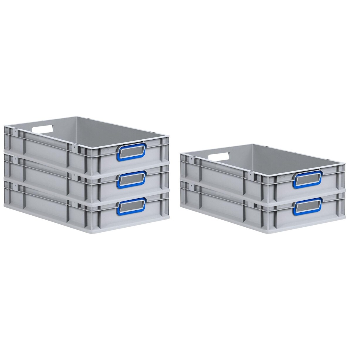 PROREGAL SparSet 5x Eurobox NextGen Color, HxBxT 12x40x60cm, 23 Liter, Griffe blau offen, Grau, Eurobehälter, Box, Transportbehälter