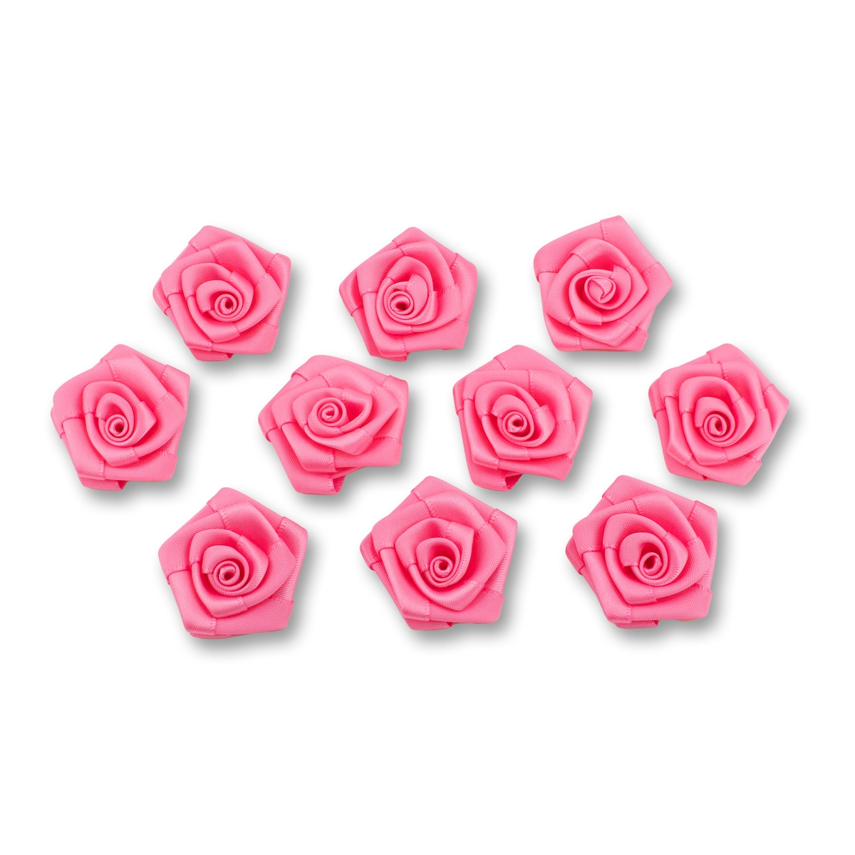 Creativery Satinrosen 3cm 10 Stück Stoffblumen zum Basteln Dekorieren Hochzeit Geschenkverpackung Blütendeko Tischdeko Handarbeit Stoffrosen Deko Blumen Pink