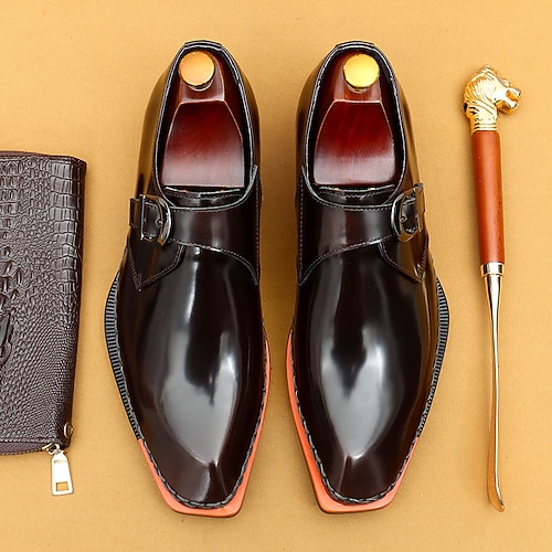 Scarpe eleganti da uomo in vera pelle con cinturino da monaco - scarpe classiche formali da lavoro con fibbia in pelle di vacchetta per ufficio, matrimoni e abbigliamento professionale