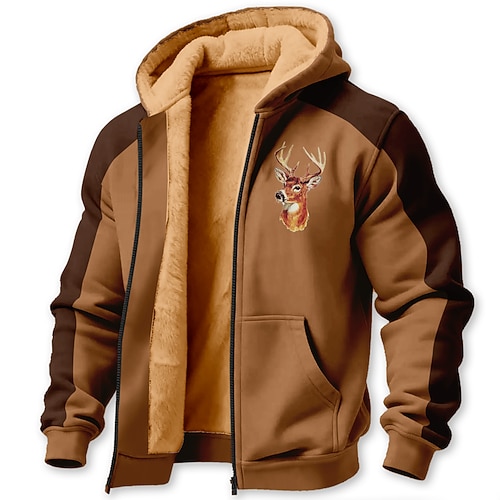 Per uomo Cervo Pile Felpa con Cappuccio Giacca di pelle Felpa Classico Militare Da caccia Manica Lunga Girocollo All'aperto Campeggio Marrone chiaro Marrone Grigio Con zip Autunno Inverno progettista