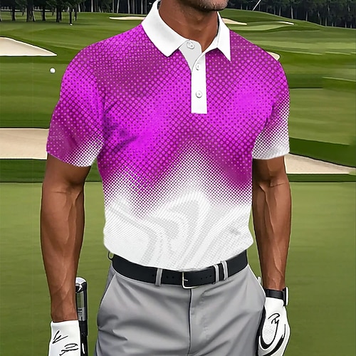 Per uomo Blocco di colori Golf Polo Sportivi Manica Corta Magliette polo Bavero Casual Athleisure Stampa 3D Bottoni Estate Blu Viola