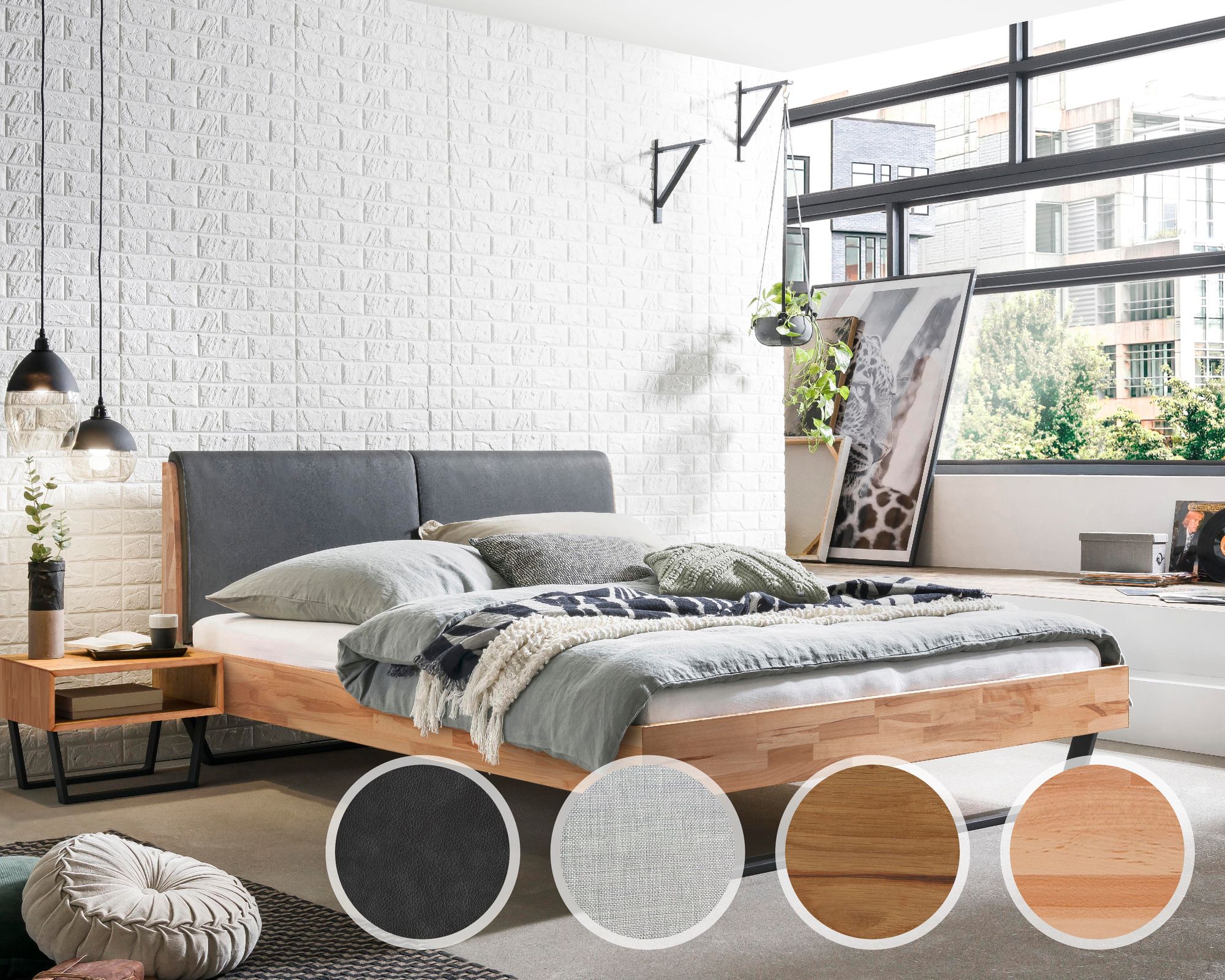 Hasena Pronto Trento Massivholzbett Pietro 180x200 cm / Kernbuche natur, geölt / 20 cm / PK2 Kunstleder 336 smoke