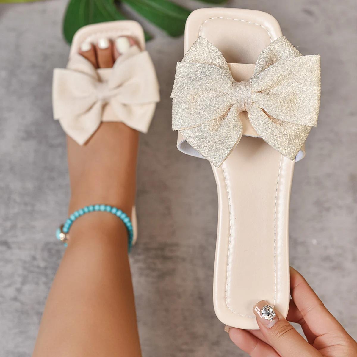 Fashion Women Flats Slippers 2025 New Fashion Bow Tie Sandals Lightweight Luxury Shoes for Women Flat Casual Beach Slippers Slides Women cm beige