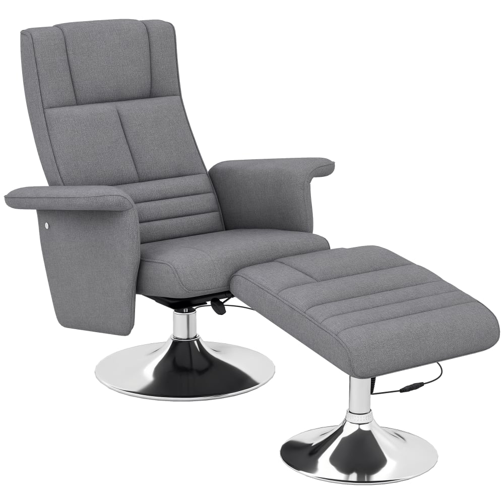 Fauteuil relax massant avec pouf tissu effet lin gris foncé