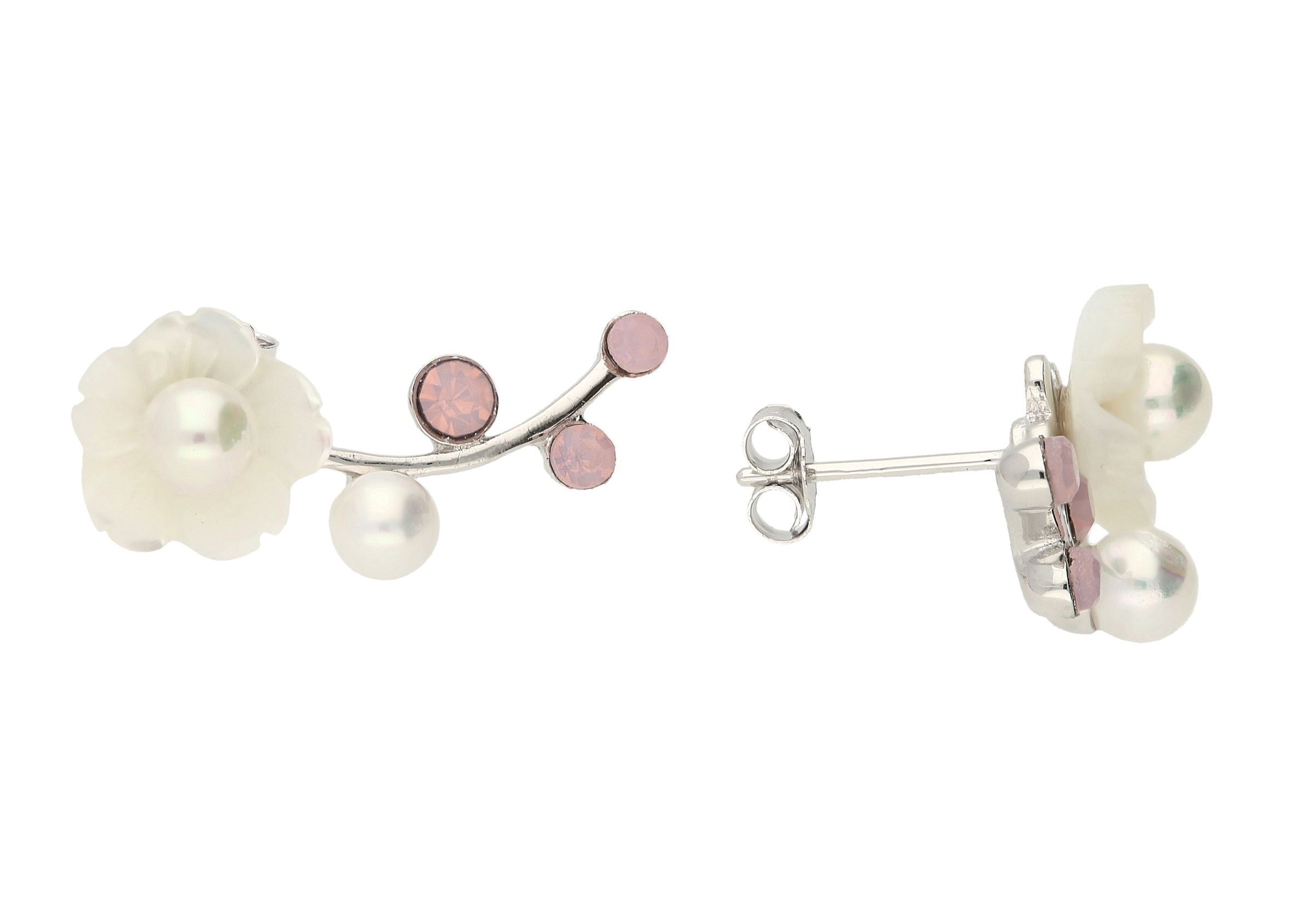 Paar Ohrhänger ADELIA´S "Damen Ohrstecker aus 925 Sterling Silber mit Blume und Perle", silber, Ohrringe, Damen, Damen, Silber 925 (Sterlingsilber)