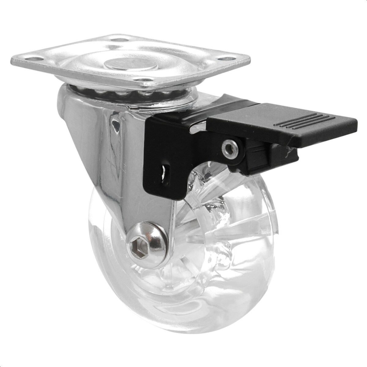 WAGNER Soft-Lenkrolle SKATER - Ø 50 mm, Stahl verchromt, transparent, Bremse & Platte, Tragkraft 40 kg - 03308501